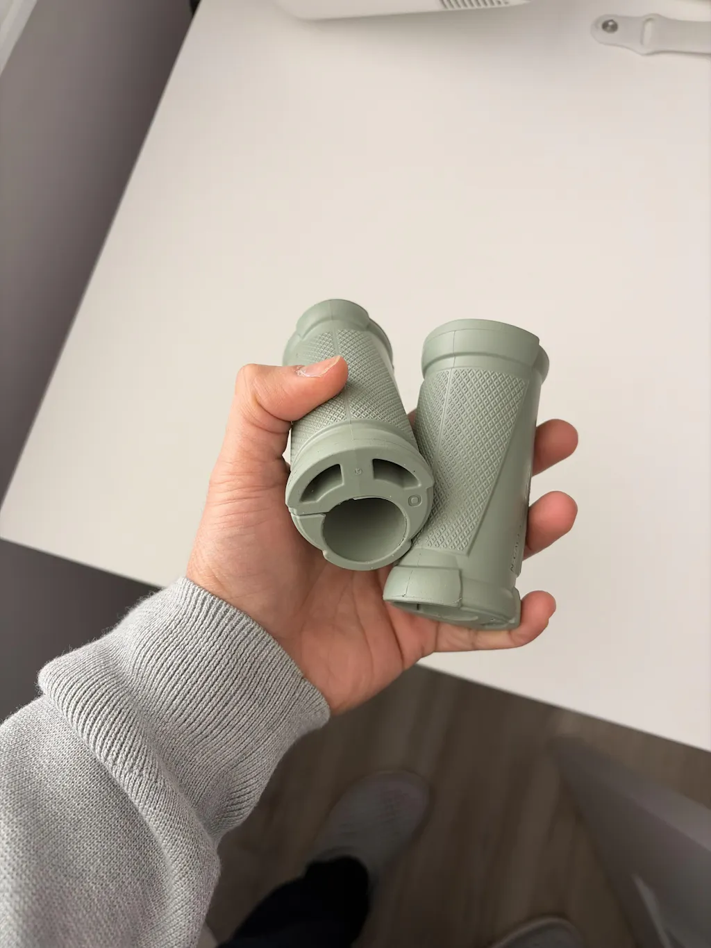 - We made the grip opening run parallel to the grip itself rather than to the bar. This means the grip wraps around more of the bar and therefore is much less likely to slip off somehow.