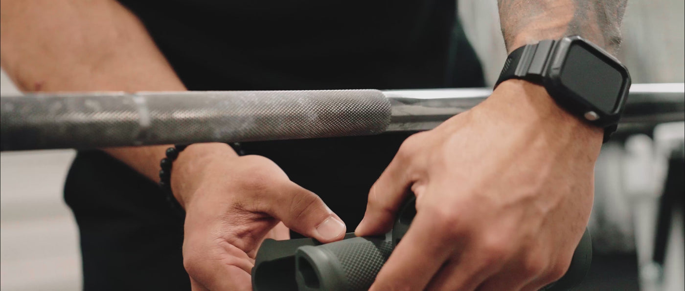 N-Gage Grips attach to any olympic-style barbell to add a more natural, joint-friendly grip anywhere on the bar you need it.