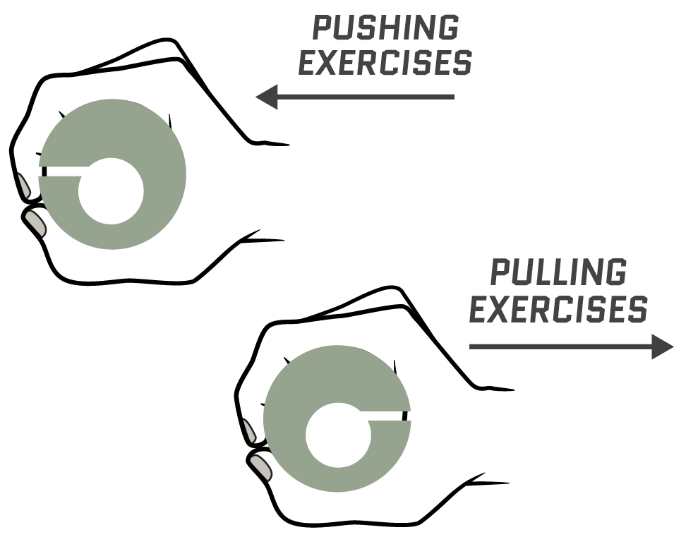 For safety, always face the grip opening away from your palm when pushing weight away from your body. Always face the grip opening toward your palm when pulling weight toward you.